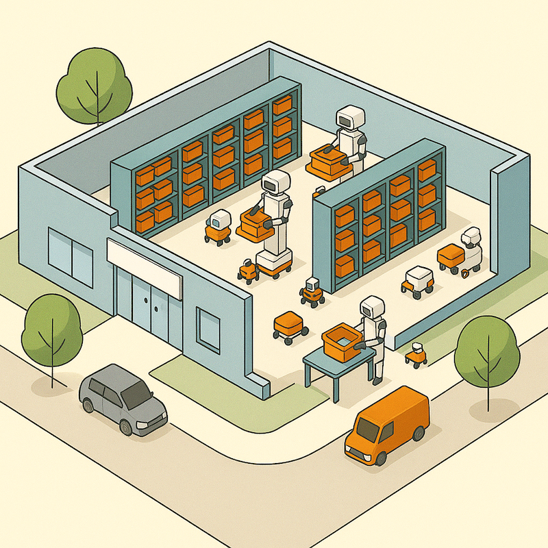 Automated systems control supplier receiving, inventory stocking, order picking, sorting, packaging, and final customer delivery handoff. Guided paths, smart sensors, and adaptive scheduling ensure that robots can move safely and efficiently throughout the facility.
